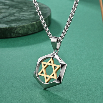 高品质卦吊坠项链防水18k镀金不锈钢六野星吊坠项链