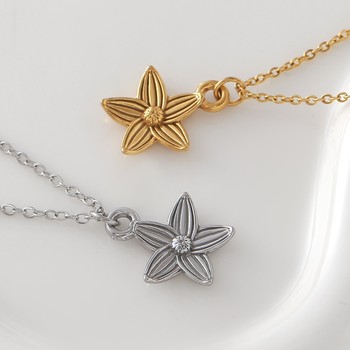 精致女式不锈钢花朵项链防水18k镀金花瓣吊坠项链